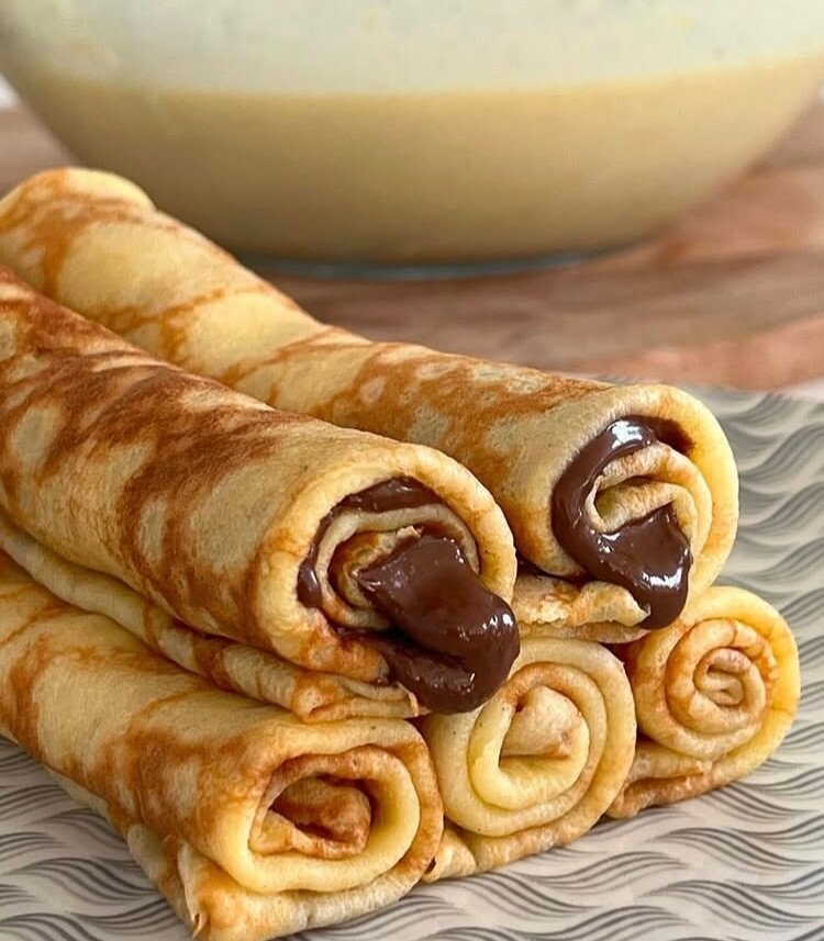 Délicieuses crêpes roulées garnies de chocolat fondant. Idéales pour un petit déjeuner gourmand ou un dessert. Appréciez leur texture légère et leur goût irrésistible qui saura ravir petits et grands. À déguster chaudes pour un maximum de plaisir chocolaté!