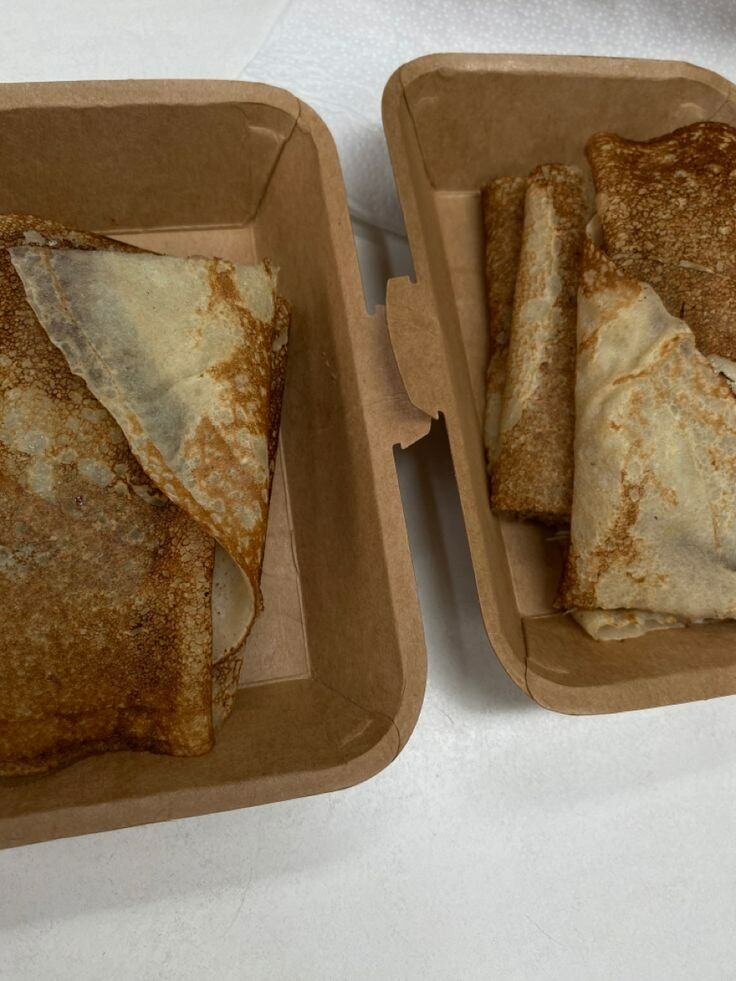 Dégustez nos crêpes fines et moelleuses, garnies d'un savoureux coulis de chocolat. Idéales pour un dessert délicieux ou une pause sucrée, ces crêpes satisferont toutes vos envies. Parfaites pour une dégustation à domicile ou à emporter!