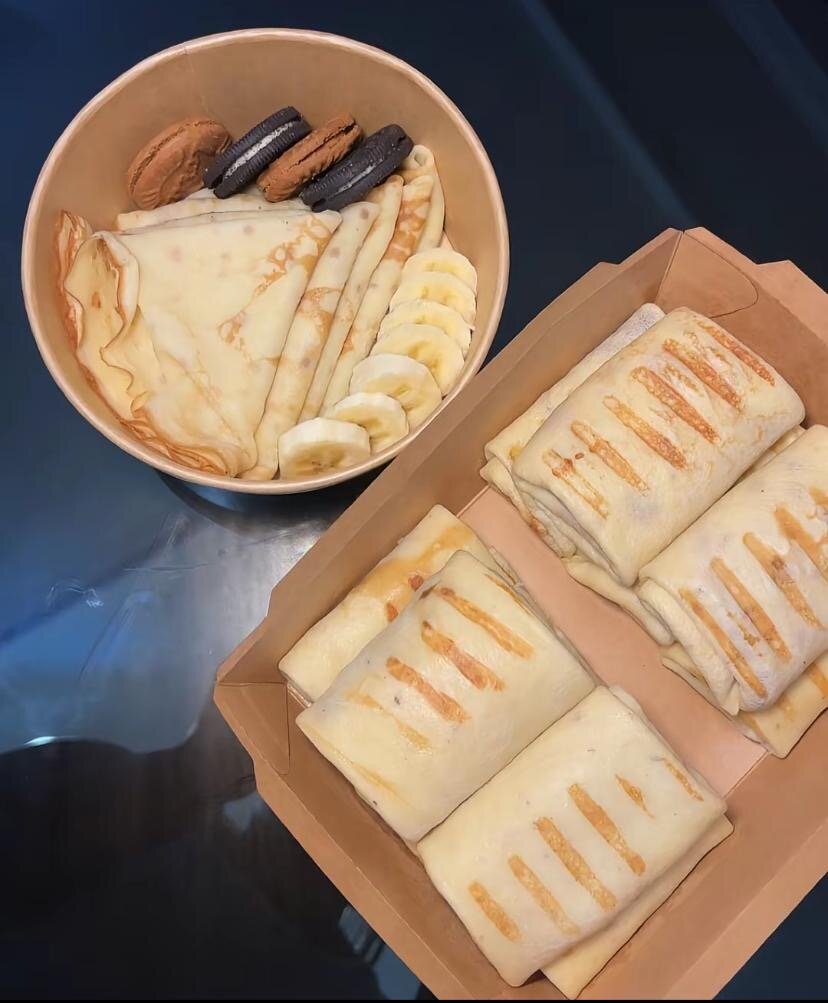 Découvrez nos crêpes gourmandes remplies de délicieux ingrédients comme la banane, les macarons et un assortiment de chocolats. Parfaites pour un dessert ou une collation sucrée. Chaque crêpe est artistiquement préparée pour offrir une expérience gustative inoubliable. Idéales pour partager ou savourer seul lors d'une pause gourmande.