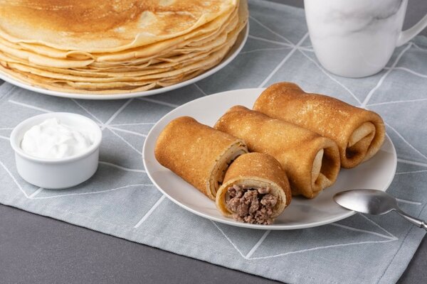 Dégustez nos 10 crêpes roulées farcies, un savoureux mélange de viande enveloppé dans une crêpe dorée