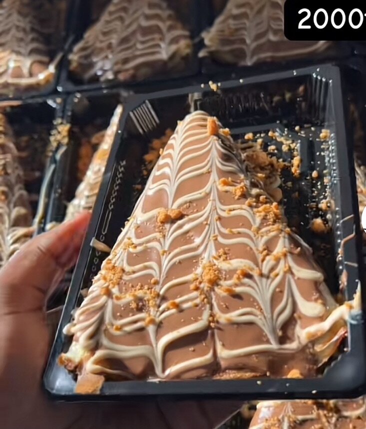 Dégustez ce délicieux gâteau en forme de triangle, nappé de chocolat et garni de caramel croustillant. Parfait pour les fêtes et moments gourmands.