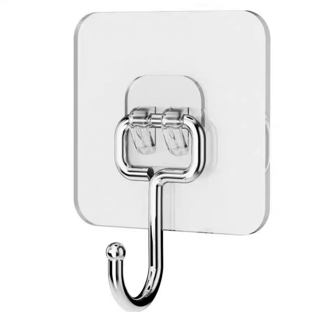 Crochet adhésif transparent idéal pour organiser votre espace. Parfait pour suspendre serviettes, ustensiles de cuisine ou accessoires dans la salle de bain ou la cuisine. Facile à installer, sans outils, pour une organisation sans effort!