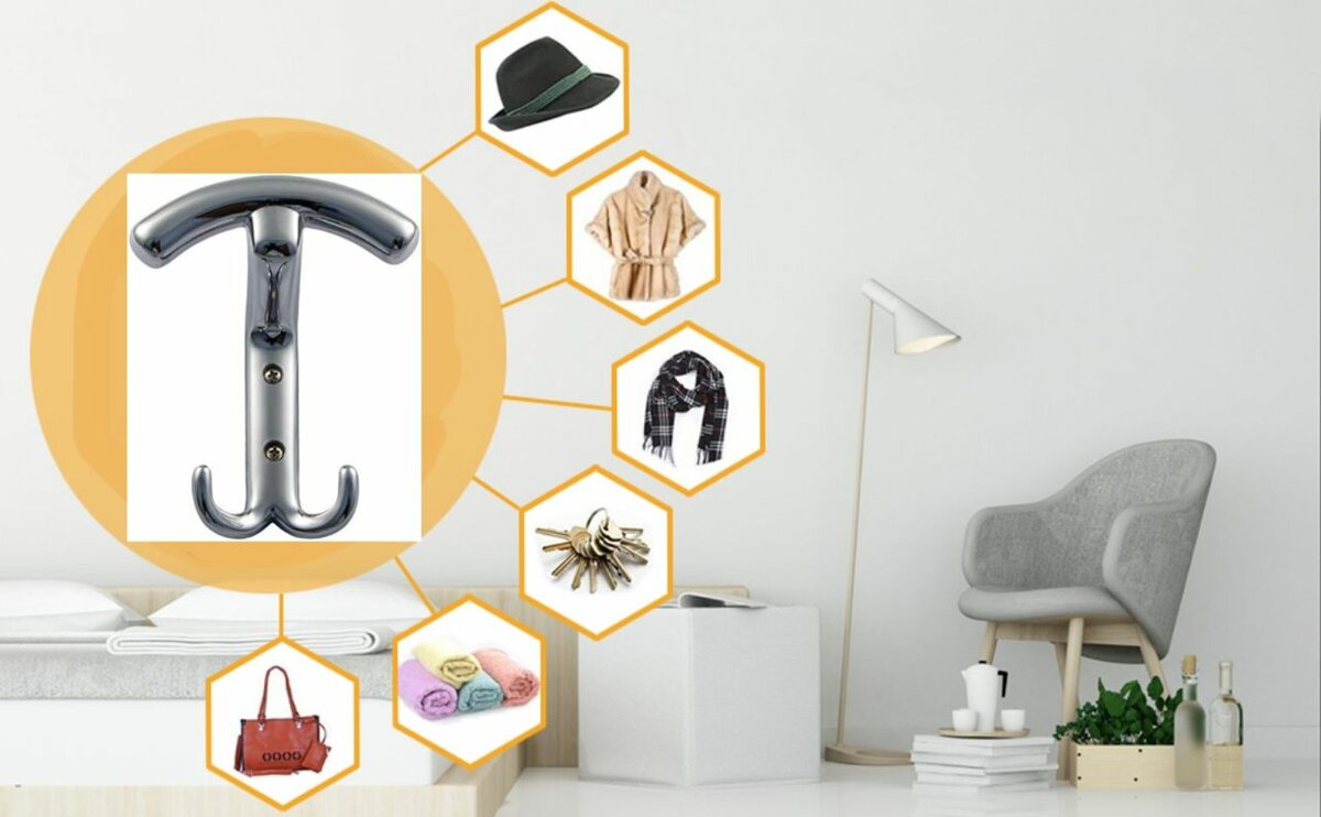 5 pièces - Crochet simple en métal au design moderne - support mural ou en bois dans le couloir - Diele et plus. Fabriqué en acier robuste - Surface : chromée
