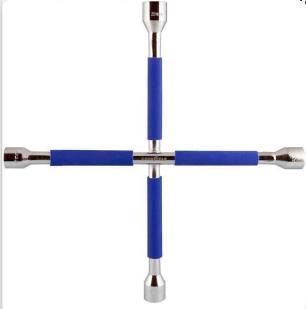 Clé en croix automobile en acier durable avec poignées antidérapantes bleues pour un changement de roue facile et sûr. Outil idéal pour les conducteurs 17-19-21-23