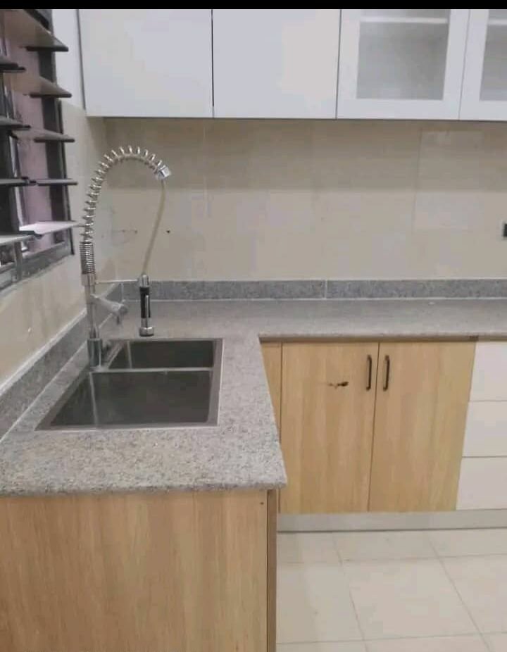 Découvrez notre cuisine moderne équipée d'un élégant évier en inox. Avec des plans de travail spacieux en granit, elle est parfaite pour préparer vos repas en toute simplicité. Idéale pour les amateurs de design contemporain et de fonctionnalité.