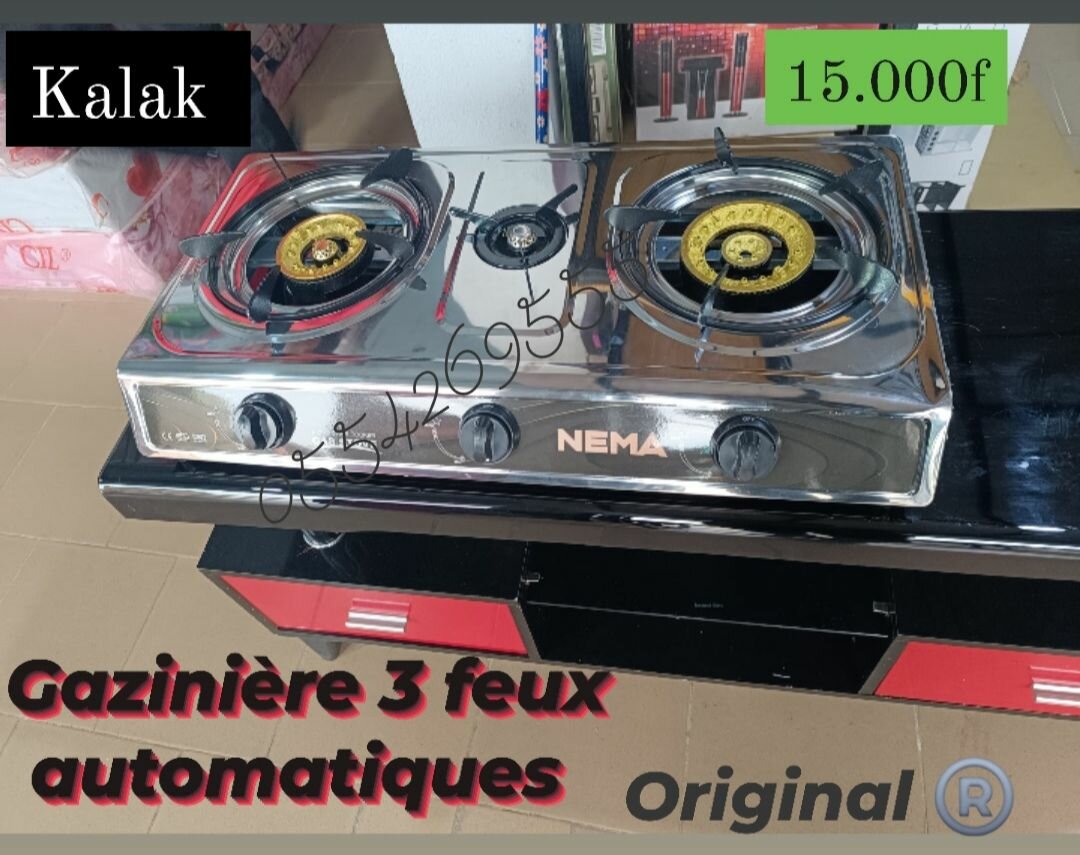Gazinière 3 feux allumage automatique. Marque : NEMA Solide durable facile à nettoyer