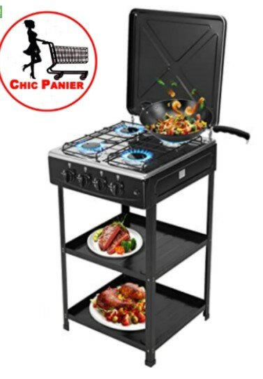 Cuisinière à gaz avec étagères et couverture