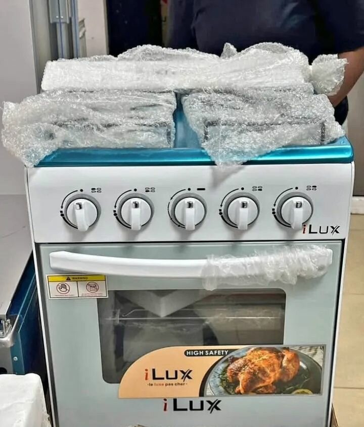 Cuisinière iLux à 4 brûleurs, parfaite pour une cuisson polyvalente et sécurisée. Four spacieux pour rôtis succulents. Design italien élégant qui s'intègre parfaitement dans toute cuisine moderne. Optez pour la qualité et l'efficacité avec iLux.