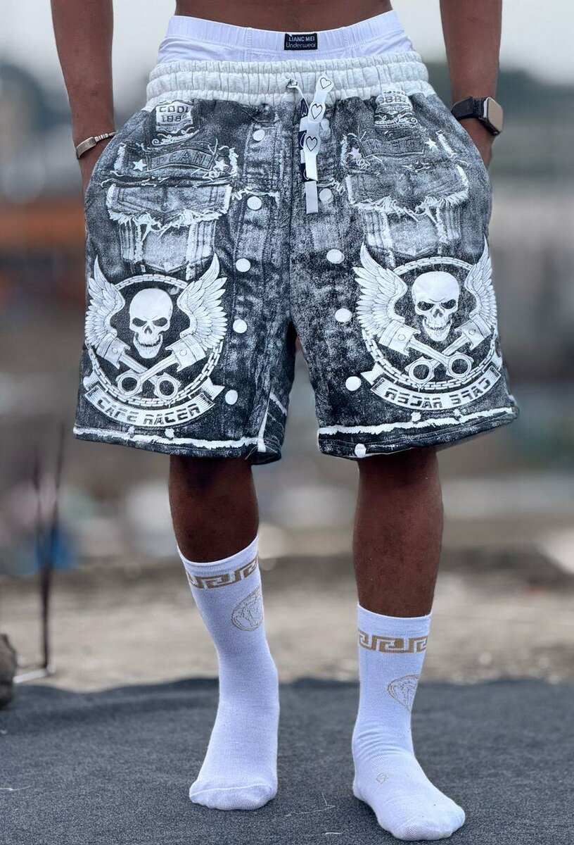 Short en jean brodé pour homme