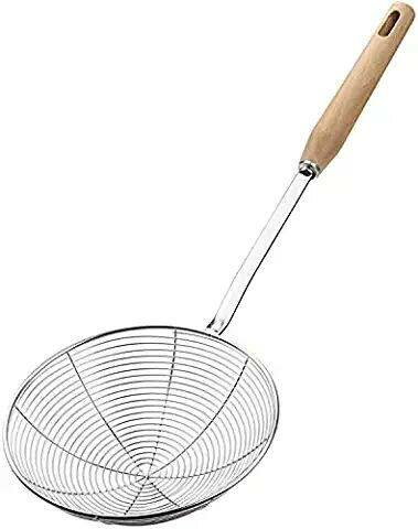 Idéale pour frire et égoutter, cette écumoire en acier inoxydable avec un manche en bois élégant est parfaite pour la cuisine quotidienne. Robuste et résistante à la chaleur, elle permet de manipuler facilement les aliments. Un outil indispensable pour tout amateur de cuisine!
