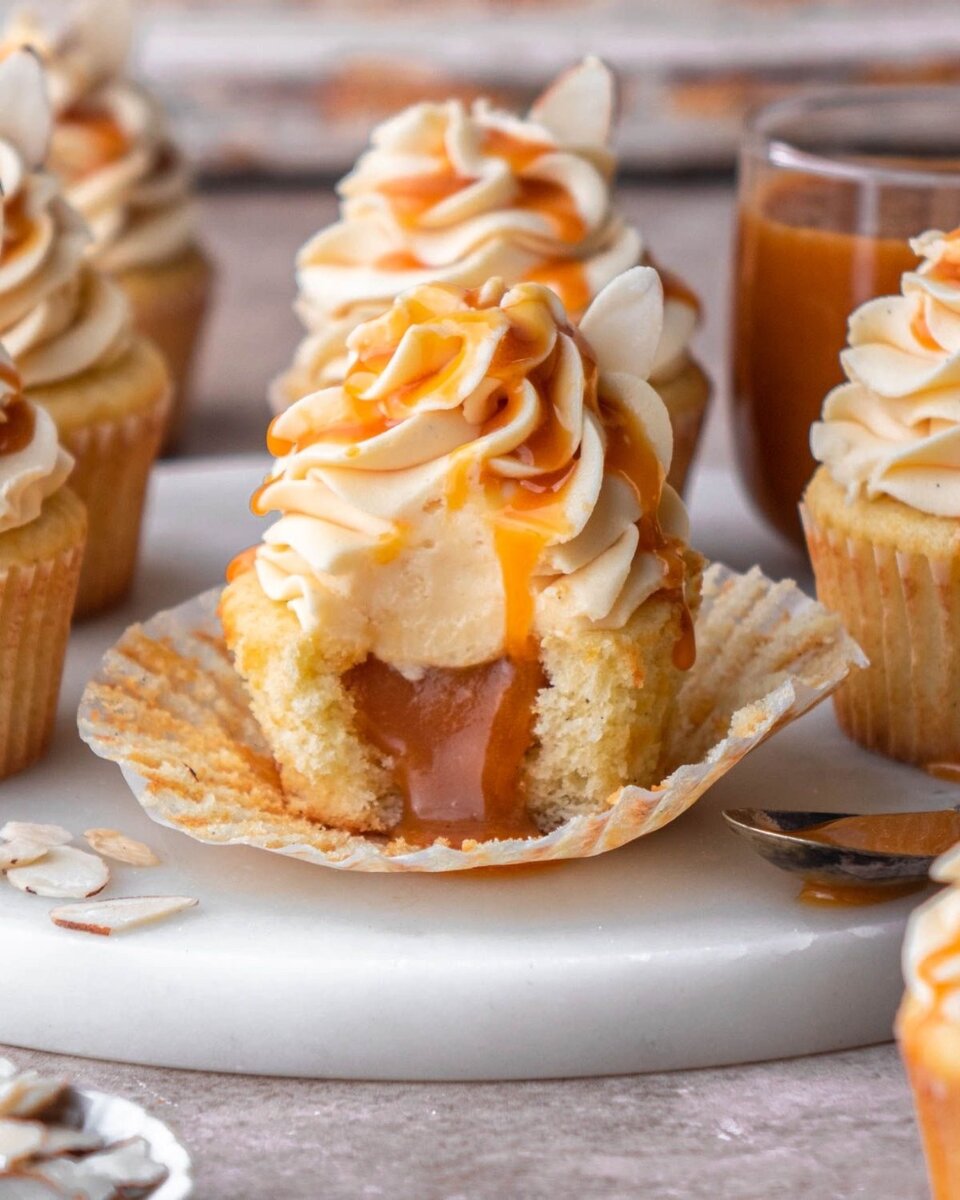 Gateau moelleux avec un cœur fondant au caramel, surmonté dun glaçage crémeux et dune touche sucrée-salée parfaitement équilibrée.