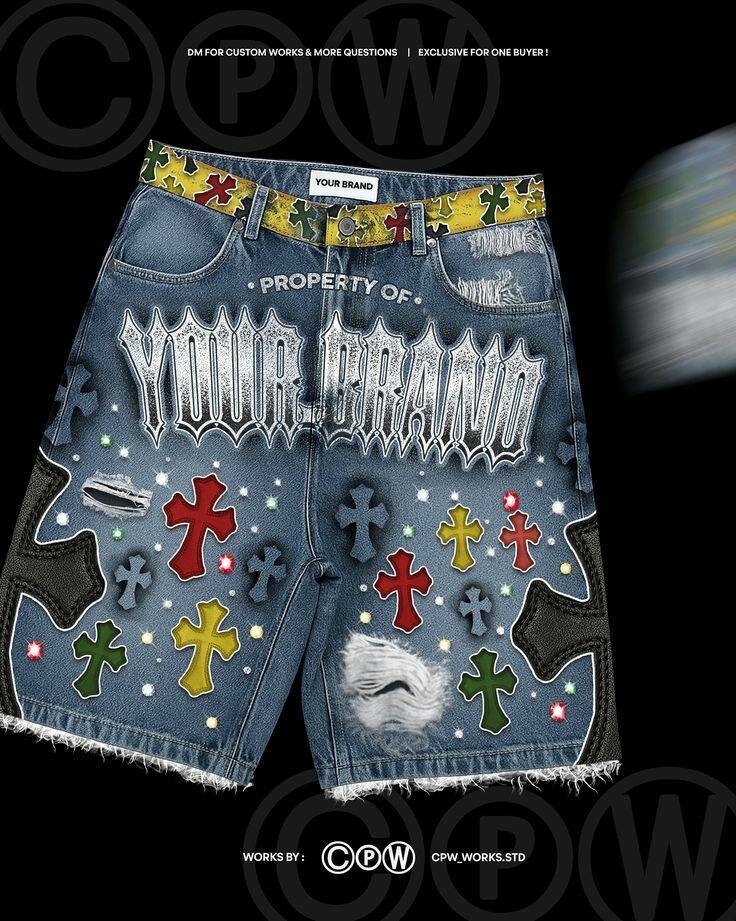 Personnalisez vos jeans shorts avec des motifs uniques et des coupures tendance. Parfait pour les amateurs de mode streetwear.