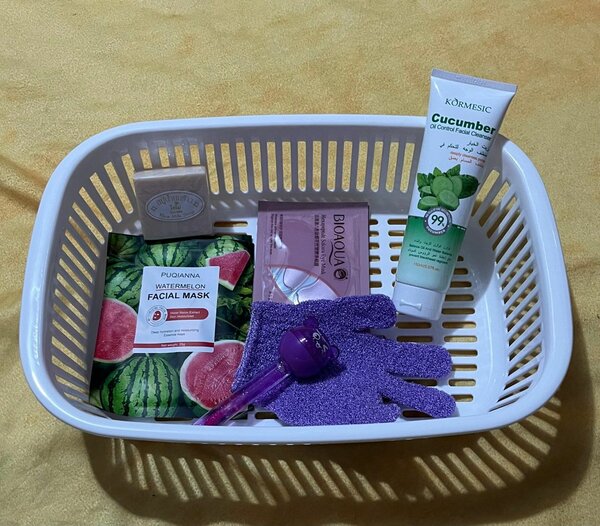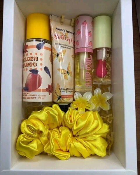 Adorable beauty gift set with skincare, makeup, and accessories. Includes brushes, scrunchies, cute packaging, perfect for pampering and creative relaxation. Ideal for birthdays, celebrations, or self-care days.