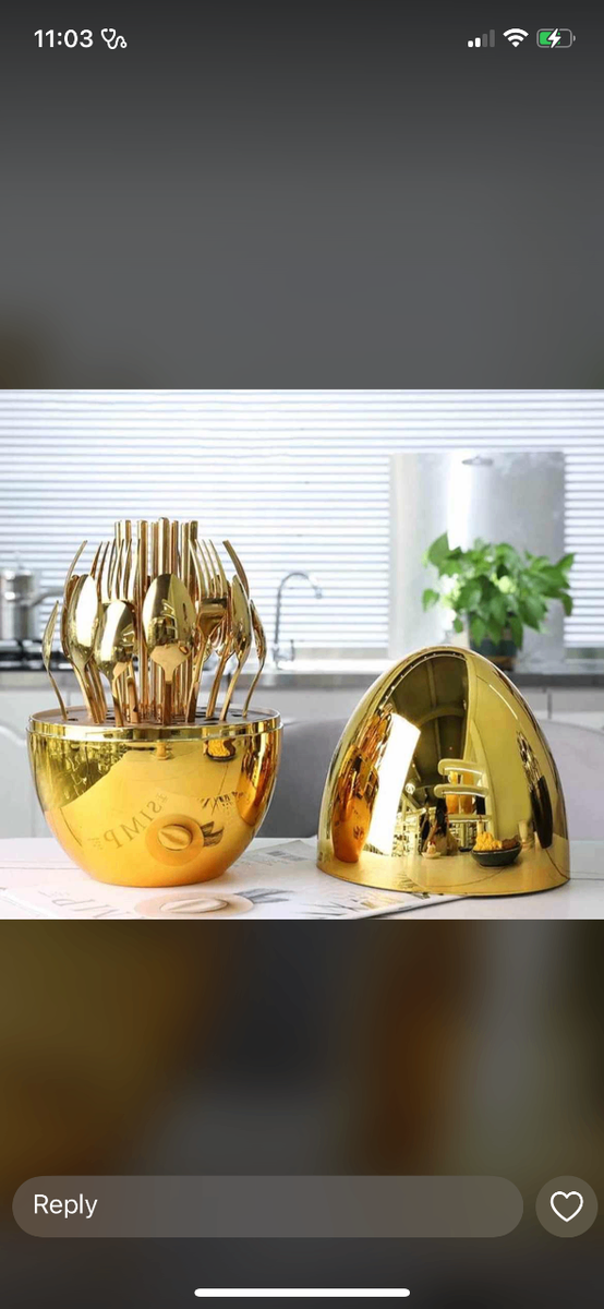 24PCS Set Gold Egg-Shaped Stainless Steel Premium Cutlery Set Dining Tableware