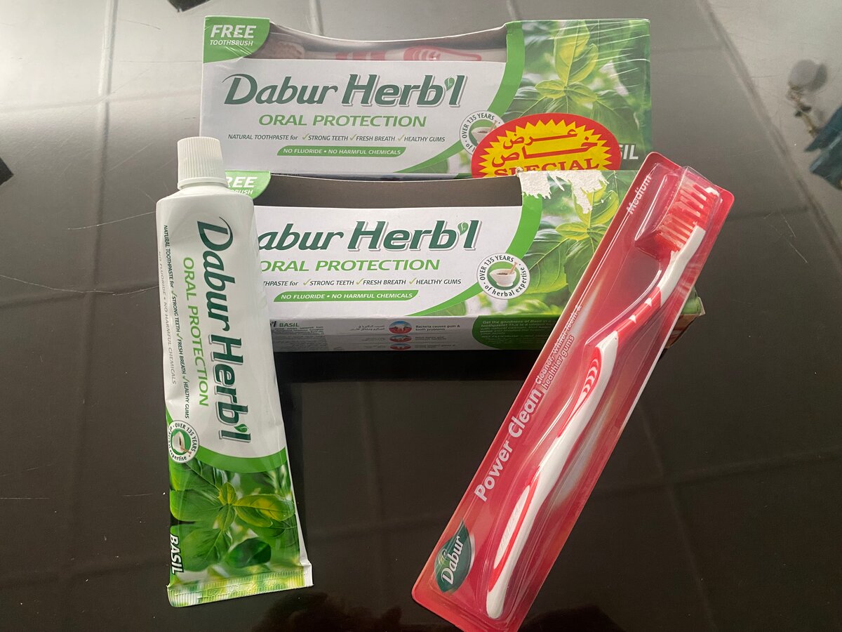 Découvrez le set complet de soin oral Dabur Herb'l : dentifrices aux herbes pour une protection optimale des gencives et des dents. Accompagné d'une brosse à dents Power Clean, ce pack est idéal pour une hygiène bucco-dentaire renforcée. Convient à une utilisation quotidienne pour toute la famille.