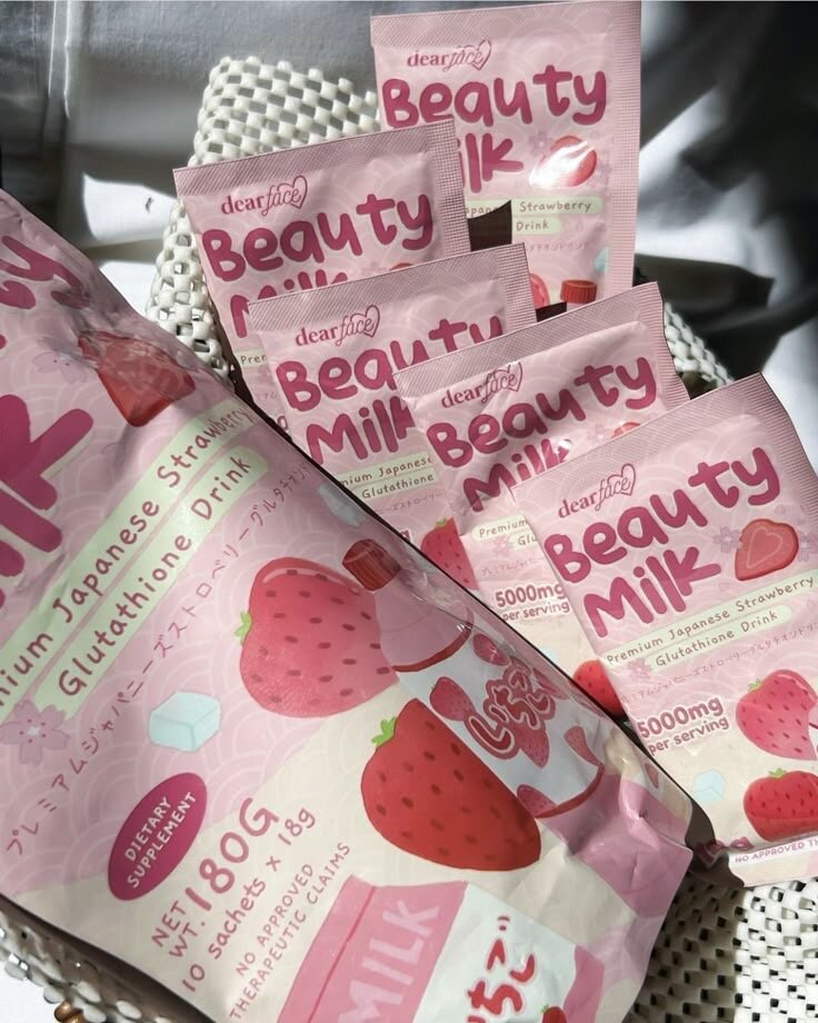 Découvrez DearFace Beauty Milk, votre allié beauté au quotidien. Enrichi en glutathion et en saveurs exquises de fraise, banane et matcha, ce lait en poudre premium améliore la beauté de votre peau de l'intérieur. Idéal pour une peau éclatante et saine. Essayez-le dès aujourd'hui!