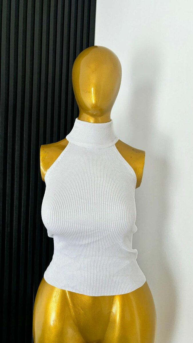 Découvrez ce débardeur blanc élégant avec un col montant, idéal pour un look moderne et chic. Fabriqué avec un tissu côtelé de haute qualité, il offre un confort optimal tout en mettant en valeur votre silhouette. Parfait pour les occasions décontractées ou habillées, ce haut sans manches est un ajout polyvalent à votre garde-robe. Associez-le avec un jean ou une jupe pour une tenue parfaite.