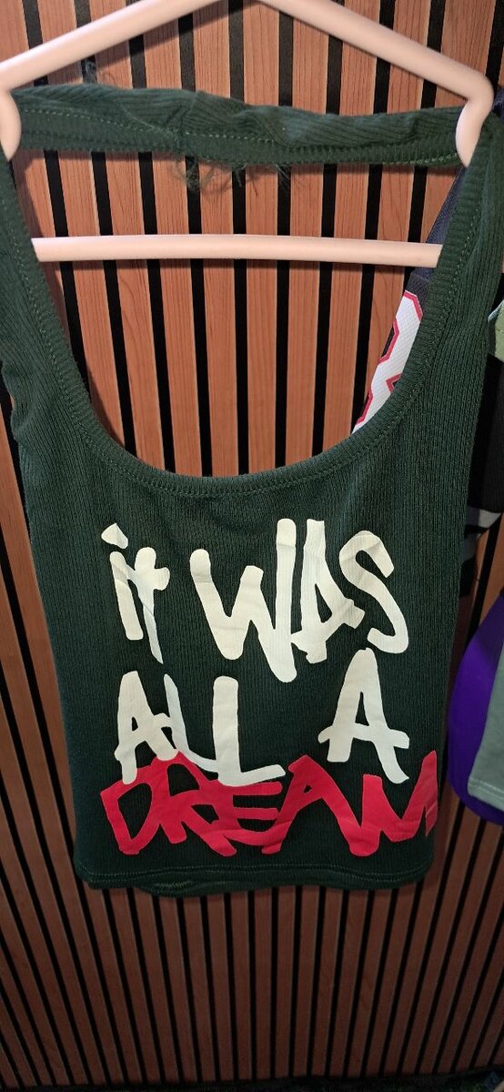 Exprimez votre style avec ce débardeur vert audacieux 'It Was All A Dream'. Parfait pour l'été, il s'accorde avec tout, ajoutant une touche unique à votre tenue décontractée. Tissu doux pour un confort optimal.