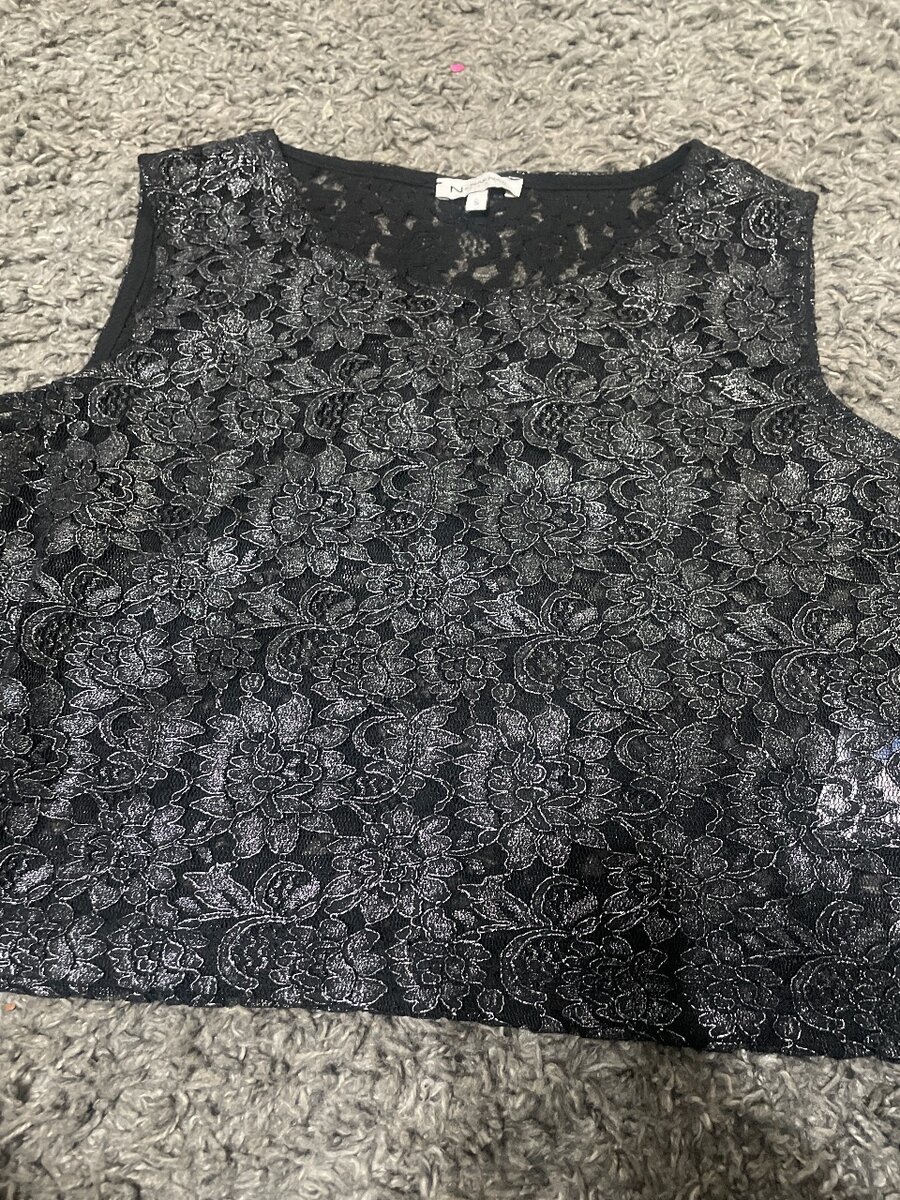 Ce débardeur en dentelle noire est parfait pour ajouter une touche d'élégance à votre garde-robe. Idéal pour les soirées ou les événements spéciaux, il se marie facilement avec un jean ou une jupe. Son design sophistiqué et son tissu léger assurent un look chic et confortable.
