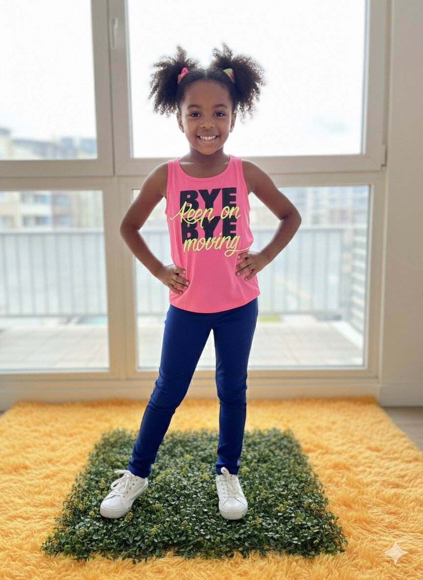 Optez pour ce débardeur rose à message 'Bye Bye Keep on Moving', idéal pour les petites filles actives. Léger et confortable, parfait pour le sport et les jeux.