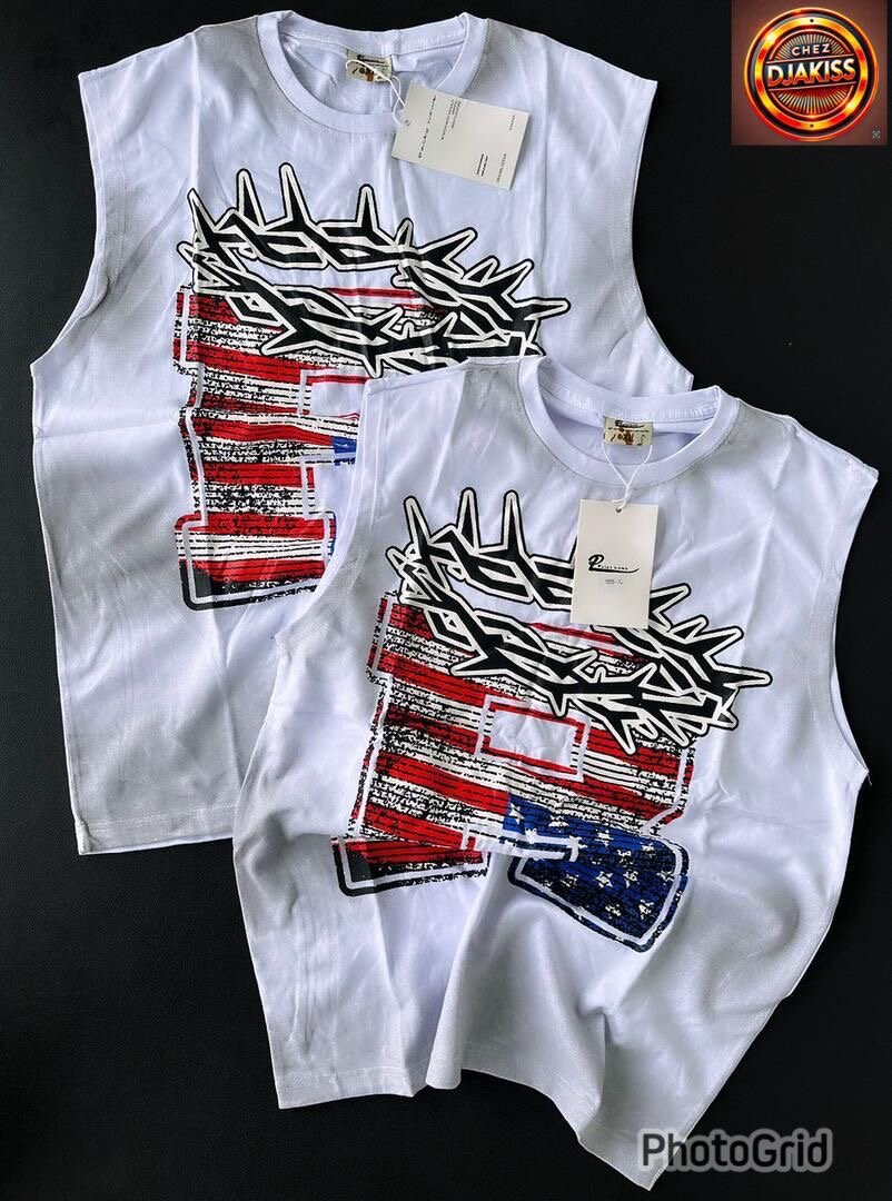 Ce débardeur graphique est parfait pour afficher votre style unique. Avec un imprimé inspiré du drapeau américain, il est idéal pour les amateurs de mode décontractée. Fabriqué en coton doux, il offre un confort optimal lors de vos sorties estivales ou à la salle de sport. Attrayant et stylé, ce haut sans manches est un excellent ajout à votre garde-robe.
