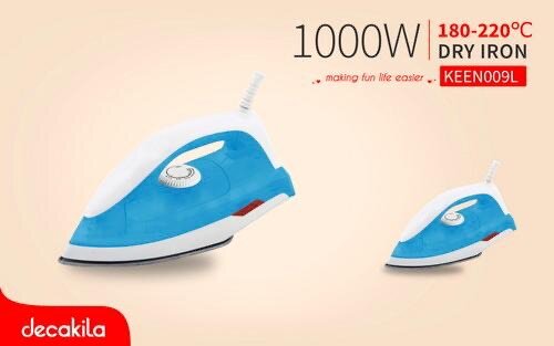 Dry iron Wattage:1000W Voltage:220V-240V 50/60Hz Plate size:185*103mm Preheating:20S With Mechanical temperature control With auto-off function Without steam Teflon soleplate Packed by color box