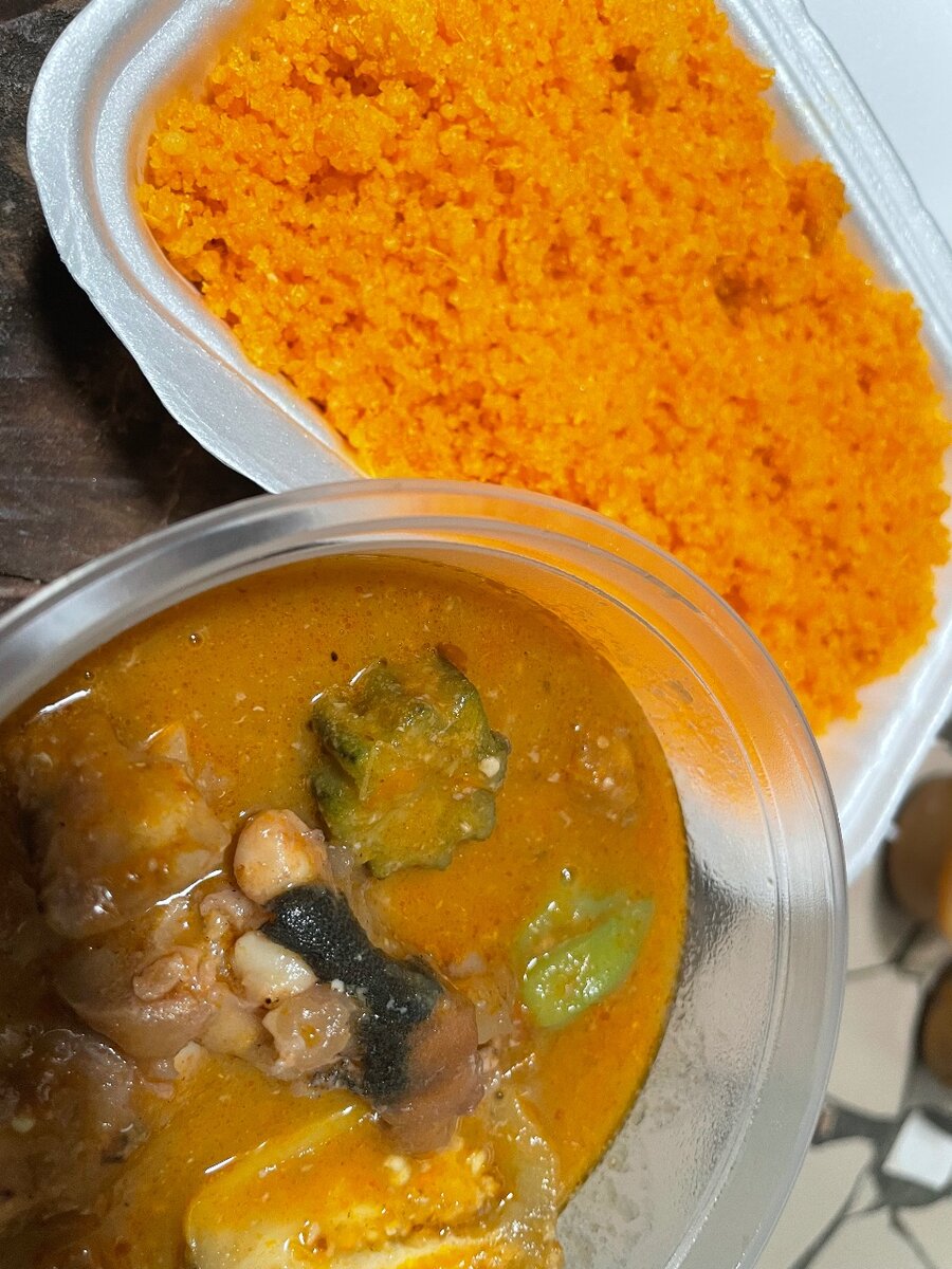 Savourez des plats africains authentiques avec notre Riz Joloff savoureux et notre plat de poisson grillé, garni de légumes. Parfait pour les amateurs de cuisine épicée et colorée. Une combinaison idéale pour un repas copieux et exotique, à partager entre amis ou en famille.