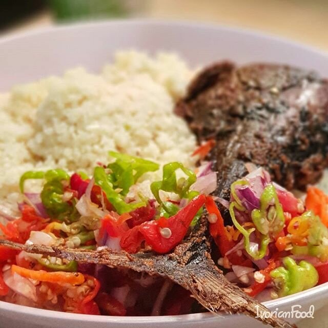 Savourez ce délicieux poisson frit ivoirien, accompagné de sa sauce et de la semoule de manioc . Parfait pour un repas familial ou entre amis, ce plat offre un goût authentique de la Côte d'Ivoire. Une explosion de saveurs vous attend!