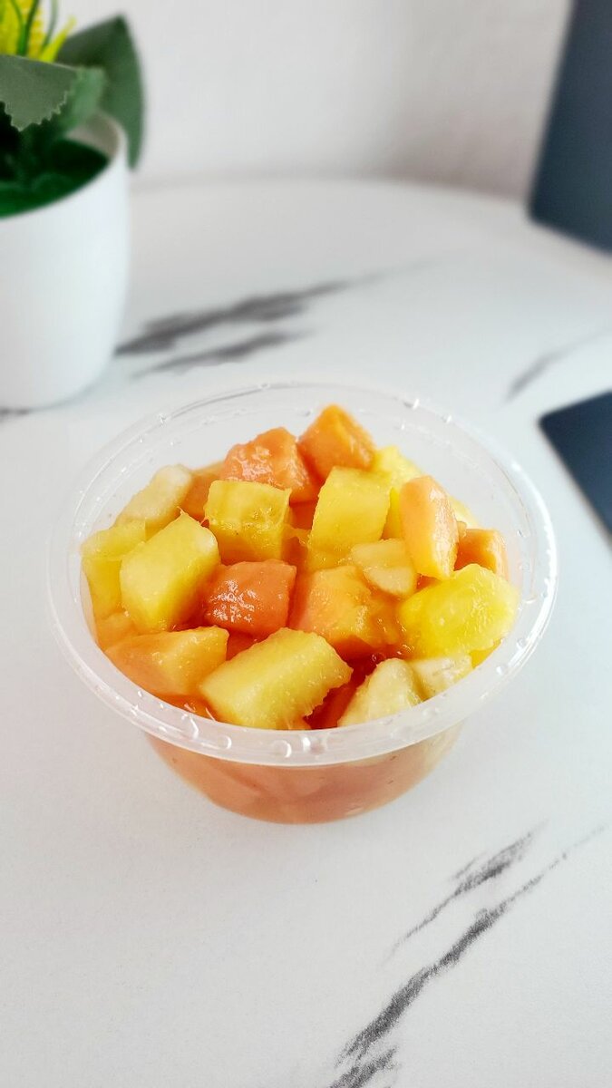 Lee pot d'un DÉLICE TROPICAL est composé de : Ananas, Papaye, Mangue/Banane.