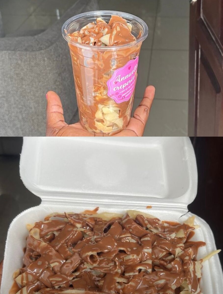 Découvrez notre assortiment de crêpes savoureuses, gâteaux au chocolat onctueux et plantains frits accompagnés d'œufs. Idéal pour un brunch gourmand ou une collation élégante.