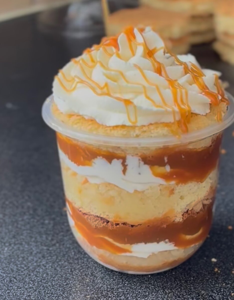Savourez cette verrine gourmande avec ses couches de génoise moelleuse, crème fouettée et caramel onctueux. Un régal à partager ou à garder pour soi! Idéale pour les pauses sucrées ou les événements spéciaux.