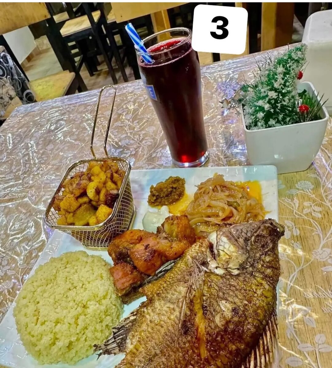 Savourez un délicieux poisson grillé accompagné de riz parfumé et de pommes de terre croquantes. Parfait pour un dîner en famille ou entre amis, ce plat est une explosion de saveurs. Accompagné d'une boisson rafraîchissante, il offre une expérience culinaire complète. Profitez d'un moment de convivialité avec ce repas équilibré et savoureux.