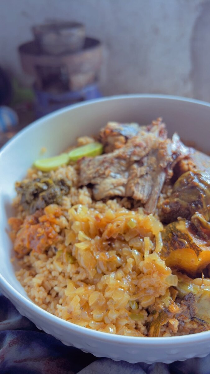 Savourez ce riz au poulet épicé, préparé avec soin pour un goût inoubliable. Idéal pour les amateurs de plats riches et épicés. Préparez vos papilles pour une expérience culinaire unique!