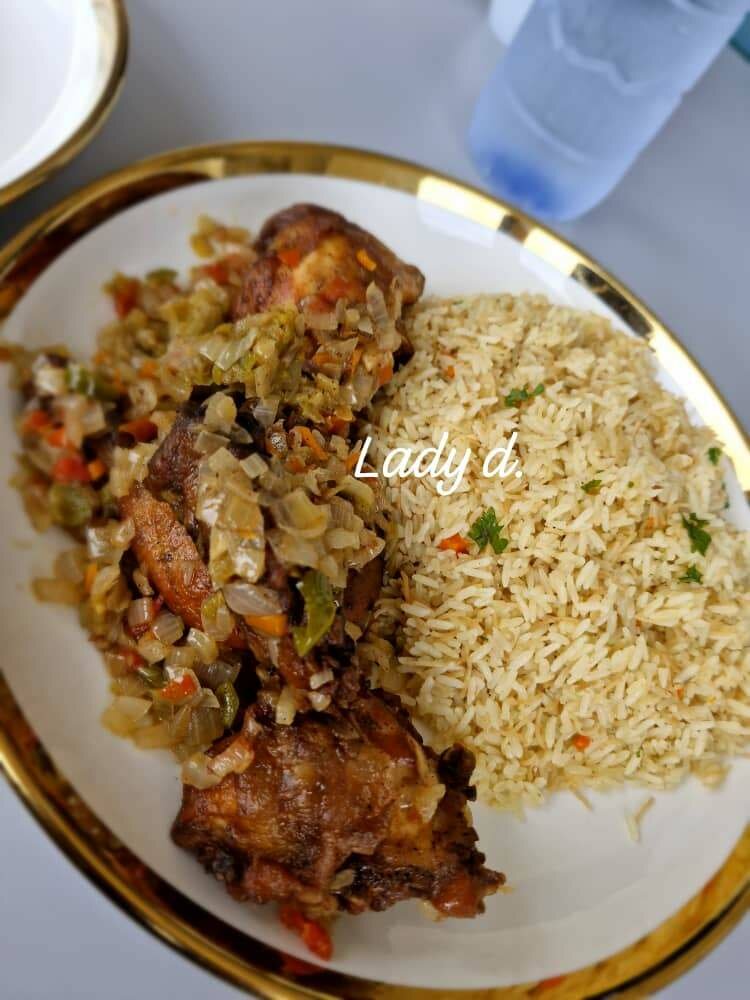Savourez ce plat de riz pilaf parfumé accompagné de morceaux de poulet juteux et épicés. Parfait pour un dîner réconfortant en famille ou entre amis. Régalez-vous avec ses saveurs riches et sa texture onctueuse.