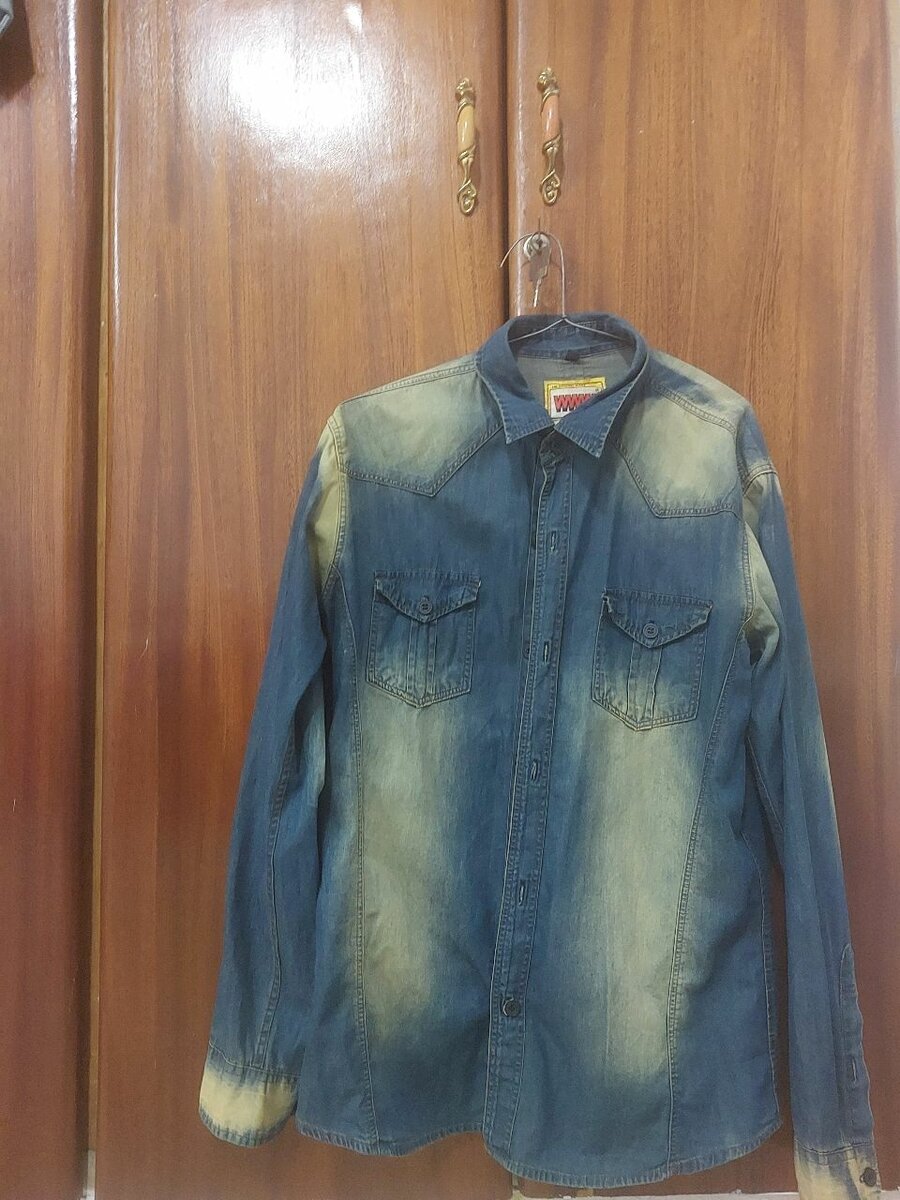 Elevate your wardrobe with this trendy denim shirt featuring a unique washed-out design. Made for comfort and style, it's perfect for casual outings or a night out. Its versatile look can be paired with jeans or chinos, making it a must-have addition to your collection.