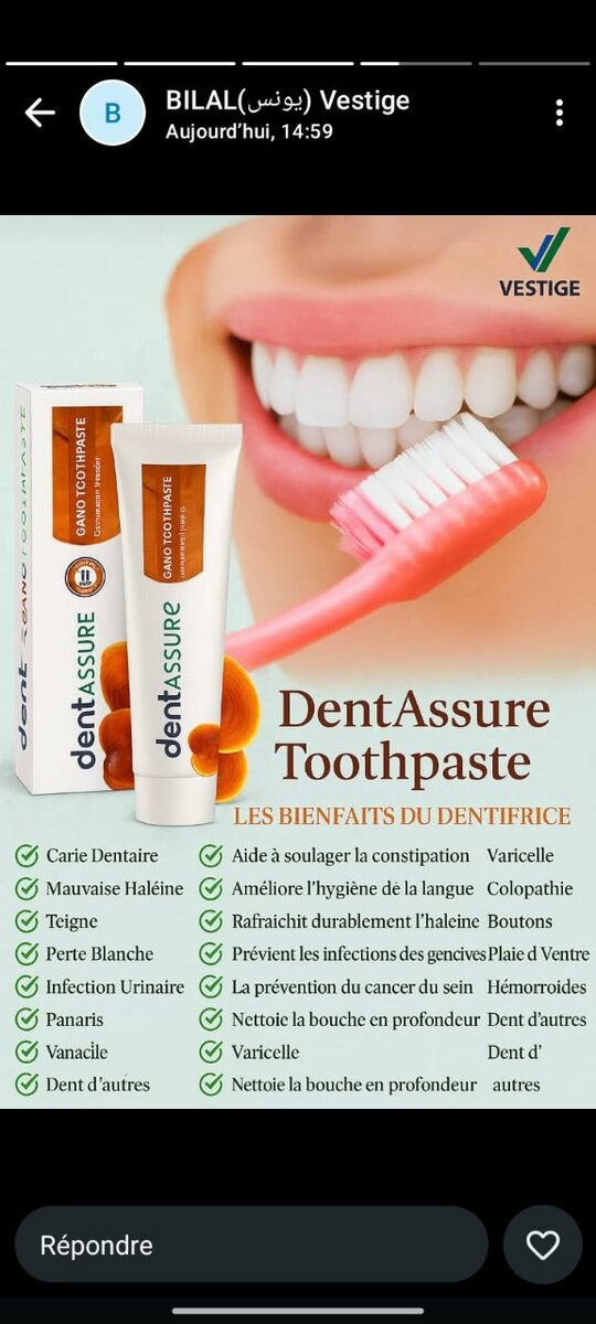 Le dentifrice offre une protection complète contre les caries et assure une haleine fraîche. Idéal pour des dents saines et éclatantes, il intègre des ingrédients naturels pour une utilisation quotidienne. Parfait pour toute la famille.
