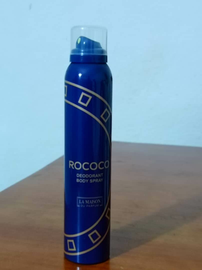Élégant déodorant corporel Rococo pour une fraîcheur longue durée. Parfait pour l'homme moderne. Conception élégante, facile à transporter.