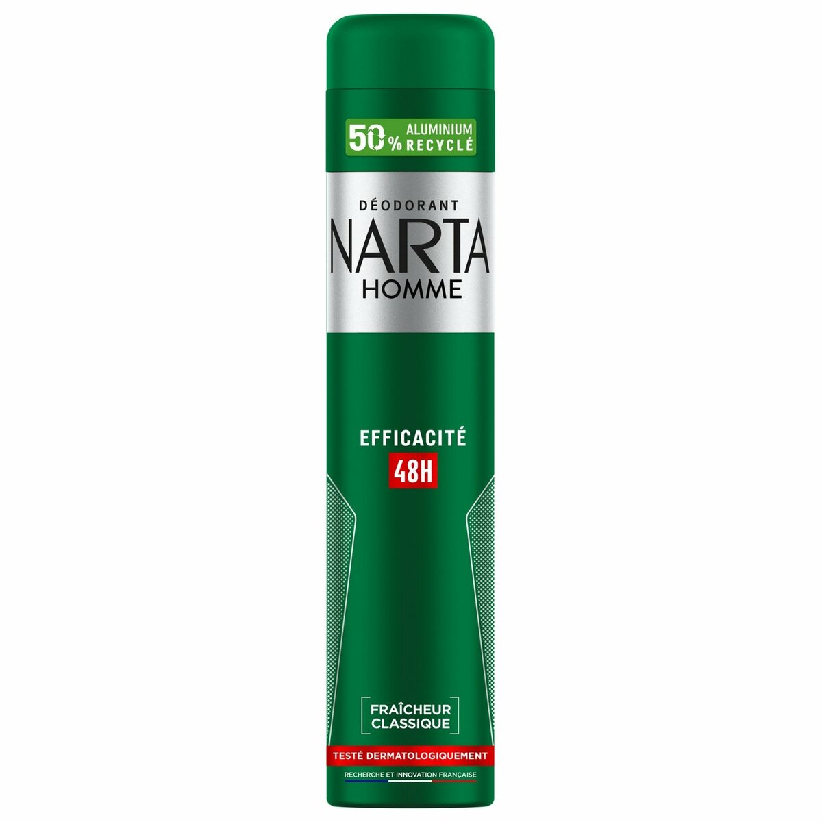Optez pour le déodorant Narta Homme, efficace pendant 48 heures. Fabriqué avec 50% d'aluminium recyclé, il assure une fraîcheur classique et une protection longue durée. Idéal pour une sensation de confort au quotidien.
