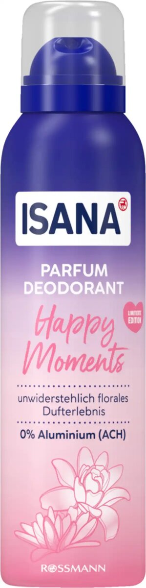 Découvrez le déodorant parfumé ISANA 'Happy Moments', offrant une fragrance florale irrésistible. Sans aluminium, il garantit une fraîcheur continue et une sensation de bien-être tout au long de la journée. Parfait pour les femmes cherchant une protection efficace et un parfum délicat et séduisant.