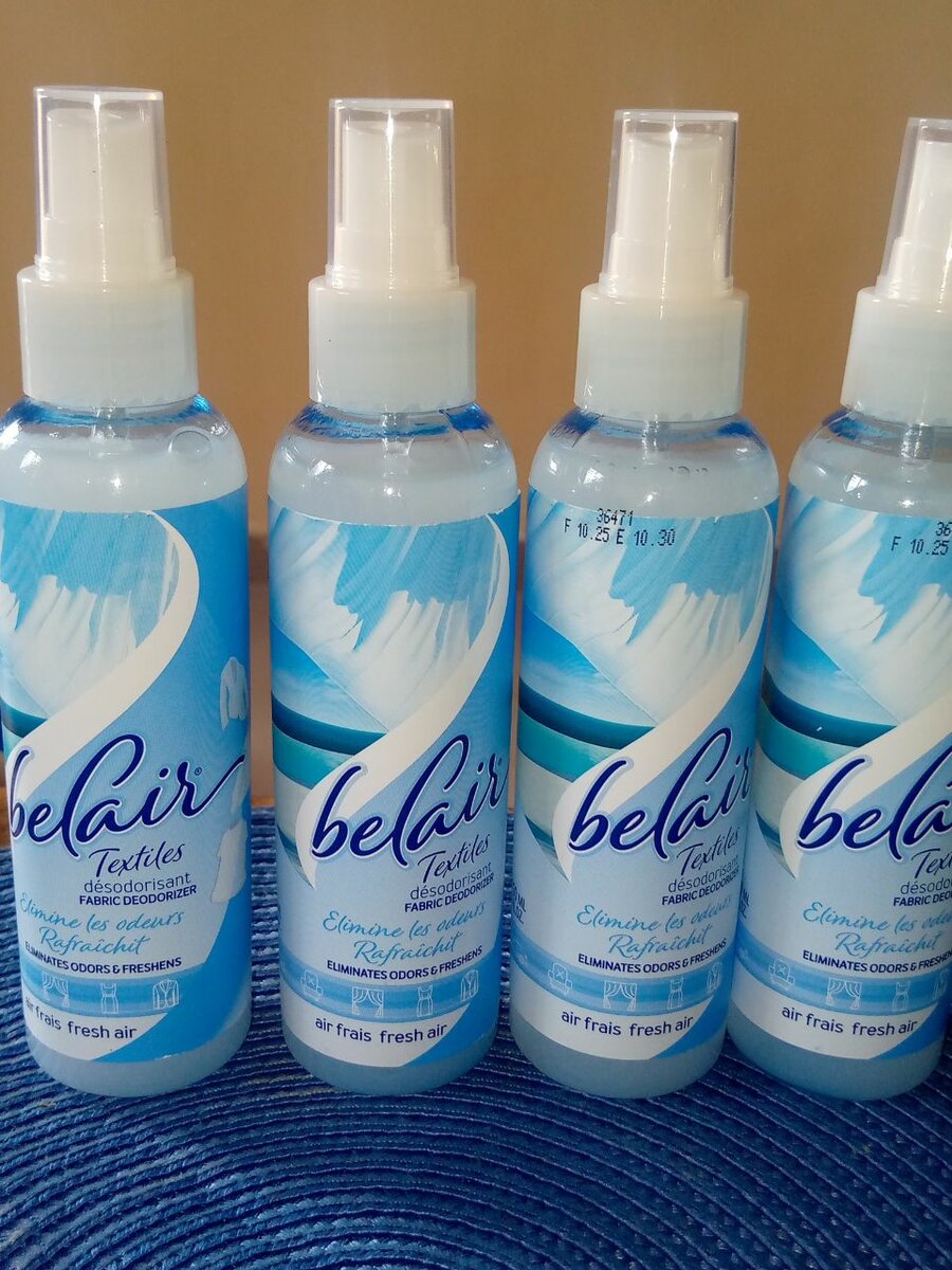 Rafraîchissez vos tissus avec ce désodorisant textile Belair. Élimine les mauvaises odeurs, laissant un parfum frais et agréable. Idéal pour rideaux, vêtements et meubles.