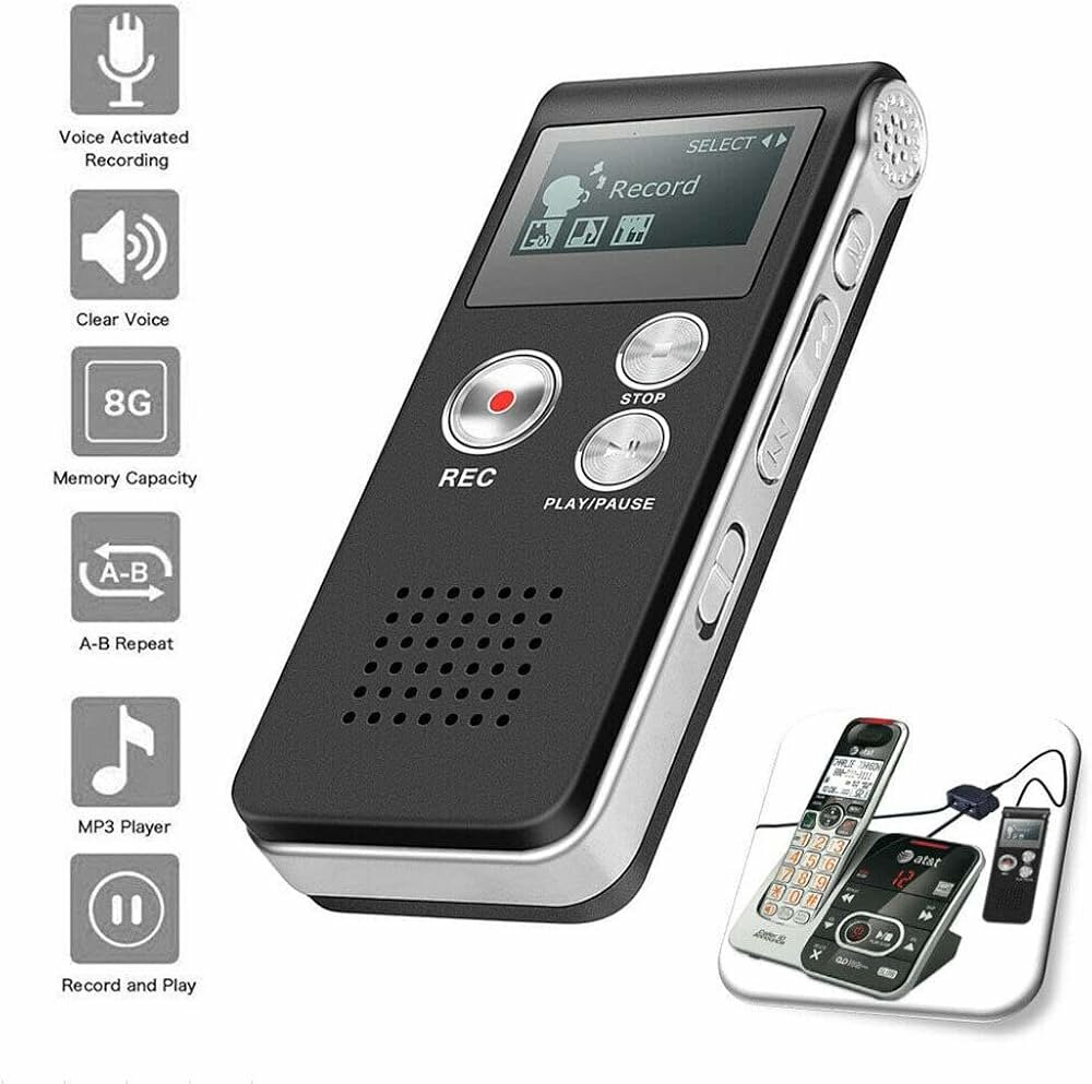 - Records sound and saves it as a digital file. - Features buttons for recording (REC), stopping (STOP), and playing/pausing (PLAY/PAUSE). - Compact and lightweight for easy carrying. - 8GB Memory