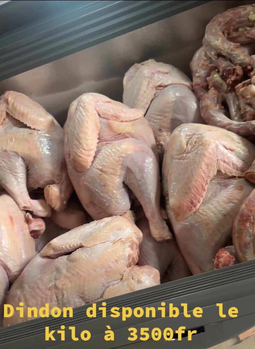 Découvrez nos dindes fraîches de qualité supérieure, parfaites pour vos repas en famille ou entre amis. Disponibles au kilo, elles offrent une viande tendre et savoureuse, idéale pour toutes vos recettes. Ne ratez pas notre offre spéciale à 3500fr le kilo. Parfait pour des occasions spéciales ou pour un dîner quotidien.