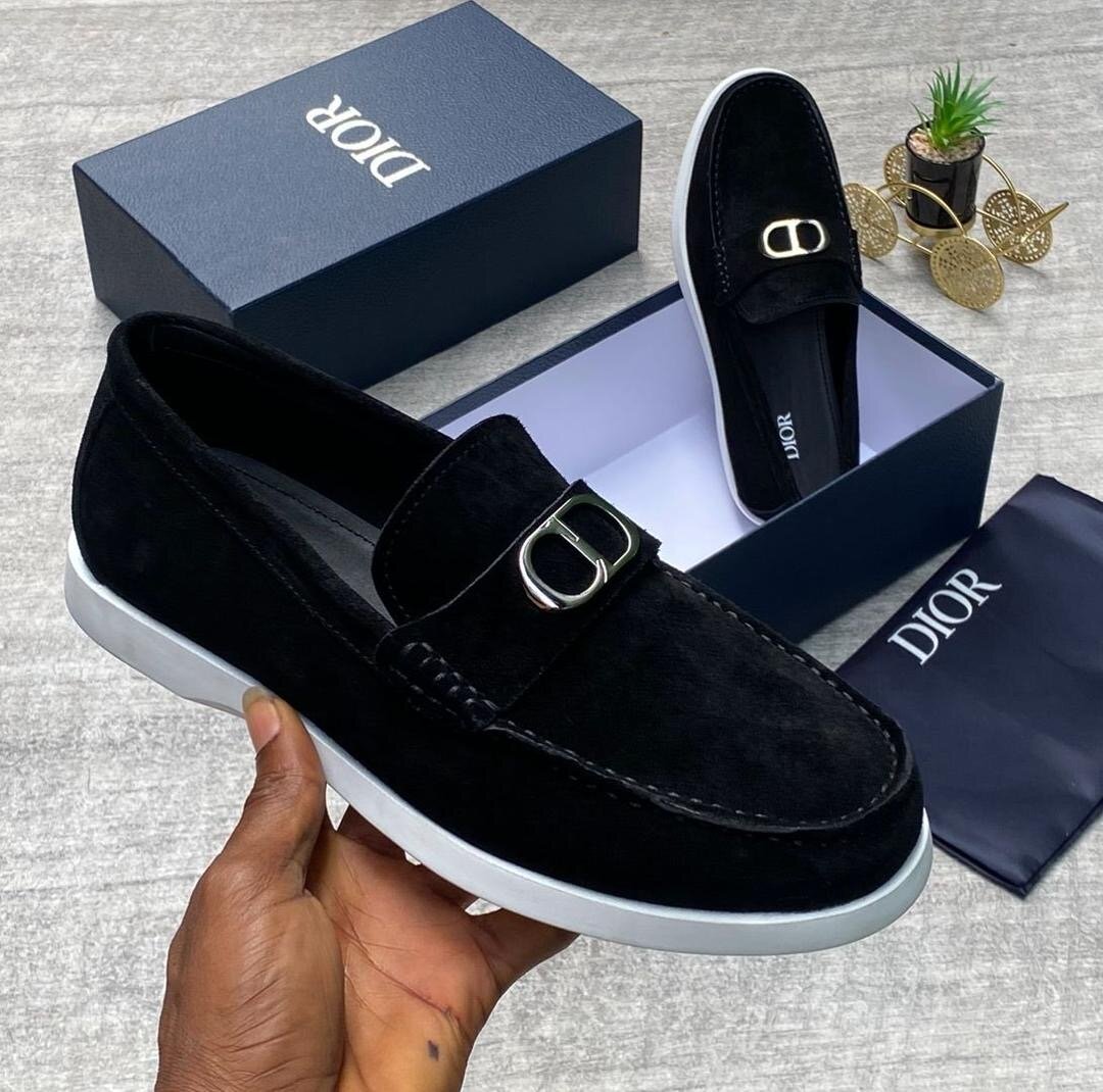 Découvrez ces élégants mocassins Dior en daim noir, parfaits pour un look chic et décontracté. Confortables et élégants, ils sont idéaux pour les occasions spéciales ou une tenue de tous les jours.