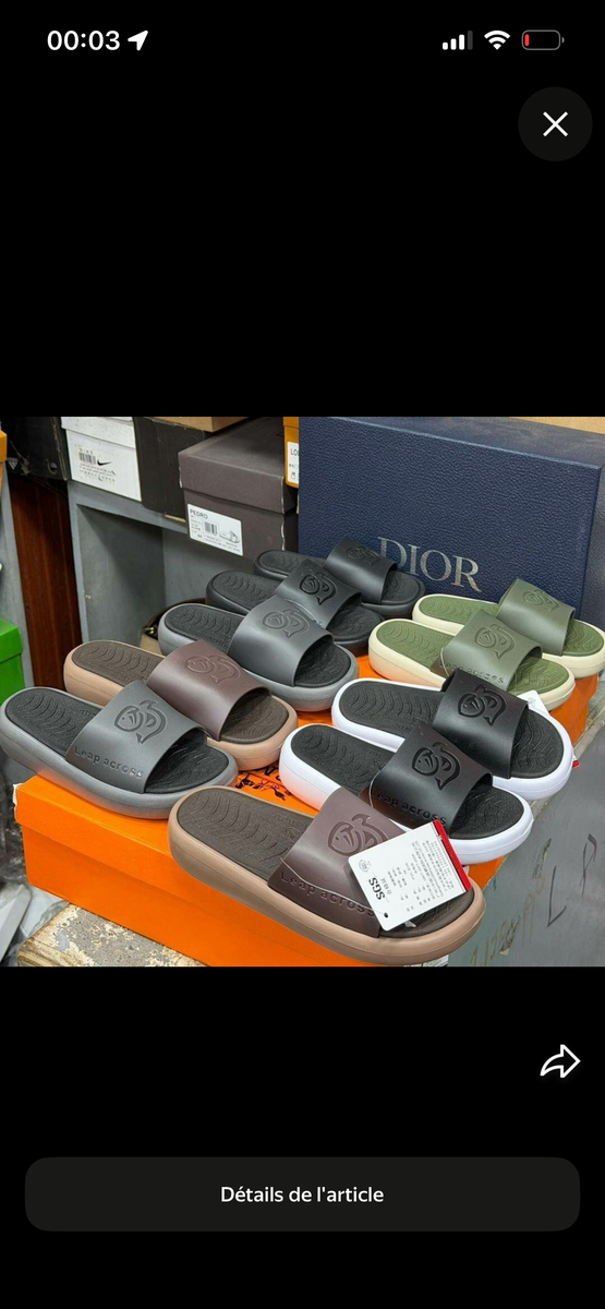 Découvrez les Slides Dior pour homme, parfaits pour un look décontracté et élégant. Conçues pour le confort, ces chaussures sont idéales pour la plage, la maison ou les sorties décontractées. Disponibles en plusieurs couleurs.