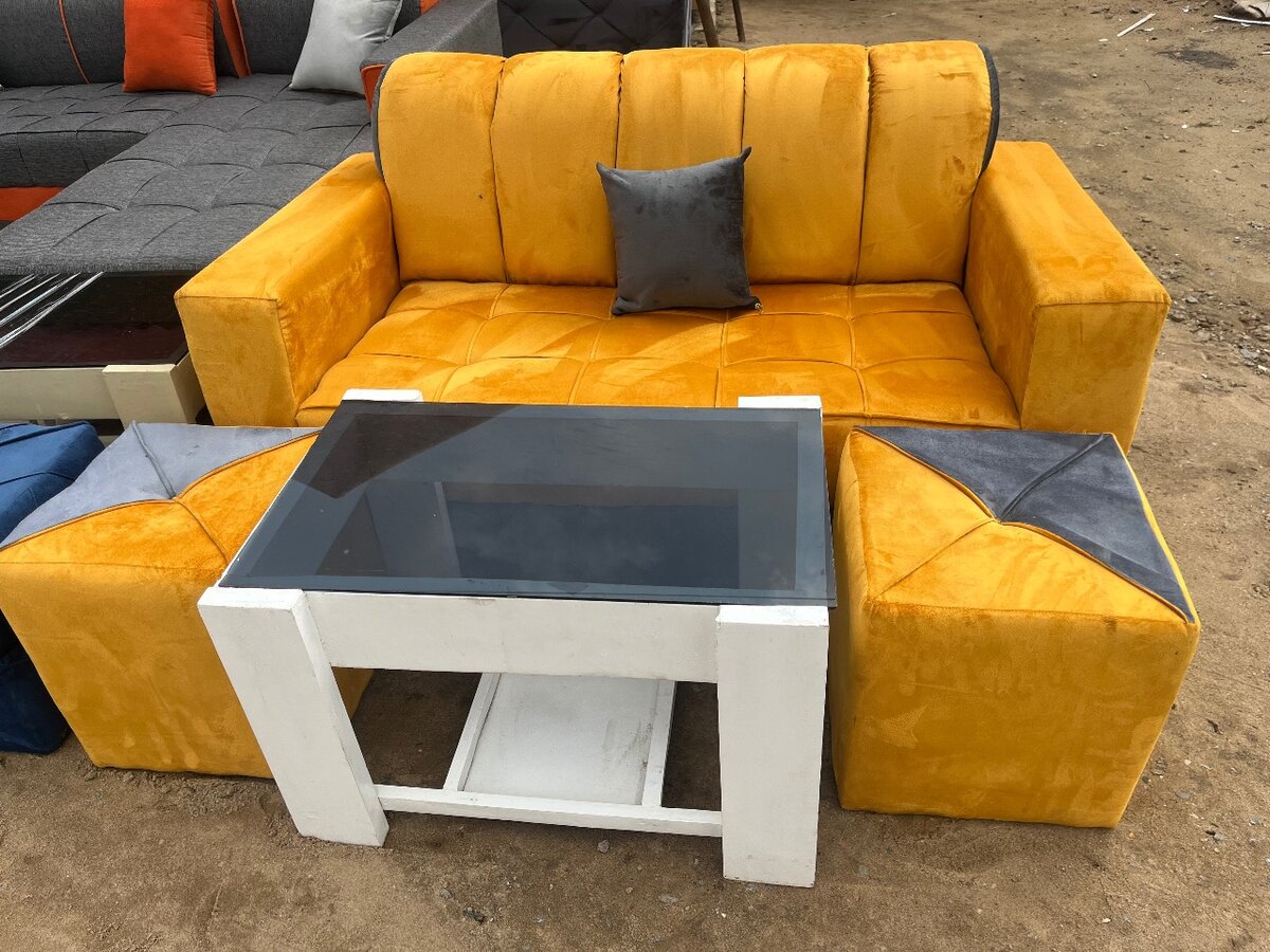 Canapé gris avec ottomans orange