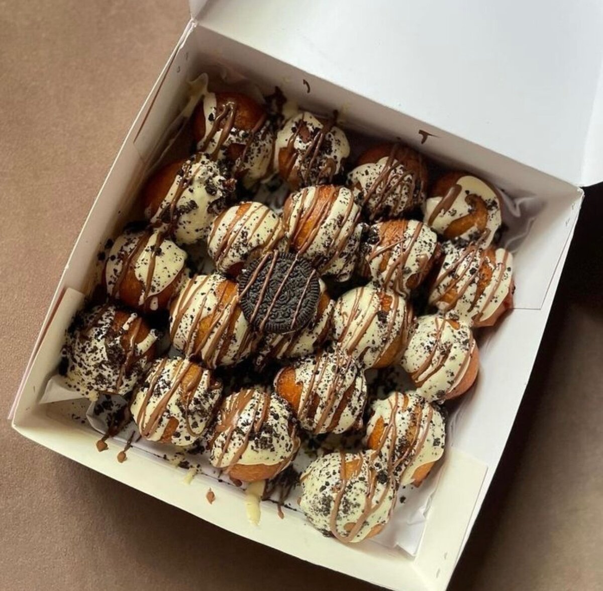 Découvrez ces délicieux donuts fraîchement préparés, enrobés de chocolat généreux et décorés de copeaux irrésistibles. Parfait pour une pause gourmande à partager avec vos proches ou pour une fête réussie! Chaque bouchée est une explosion de saveurs sucrées qui ravira vos papilles.