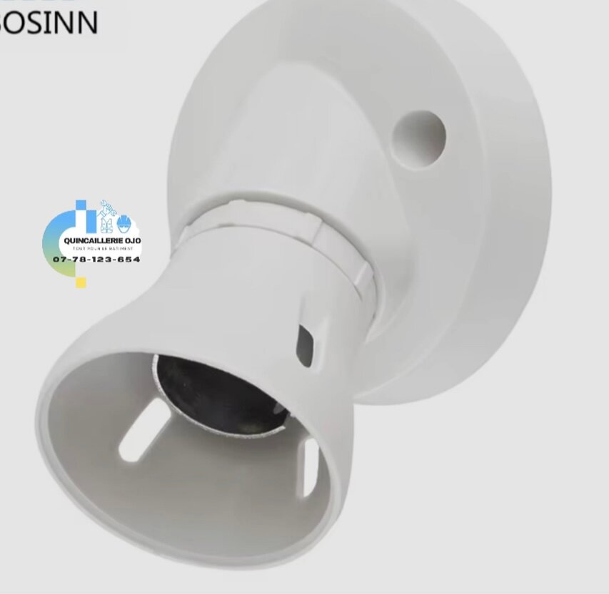 Douille murale robuste pour utilisation intérieure et extérieure. Idéale pour installation facile de luminaires dans divers espaces de votre maison.