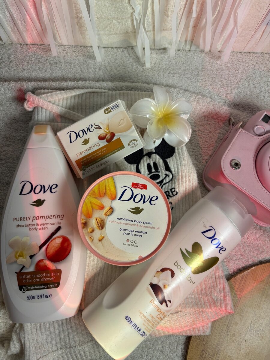 Découvrez l'élégance du coffret Dove, parfait pour dorloter votre peau au quotidien. Ce kit comprend un gel douche hydratant à la vanille et au beurre de karité, une crème pour le corps nourrissante, et un savon exfoliant au beurre de karité. Idéal pour une peau lisse et douce. Parfait pour offrir ou se faire plaisir!