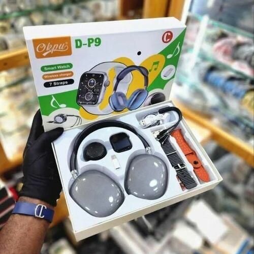 Experience the ultimate combo with D-P9 Smart Watch and Headphones. This versatile set includes 7 straps and a wireless charger. Perfect for fitness enthusiasts and tech-savvy users.