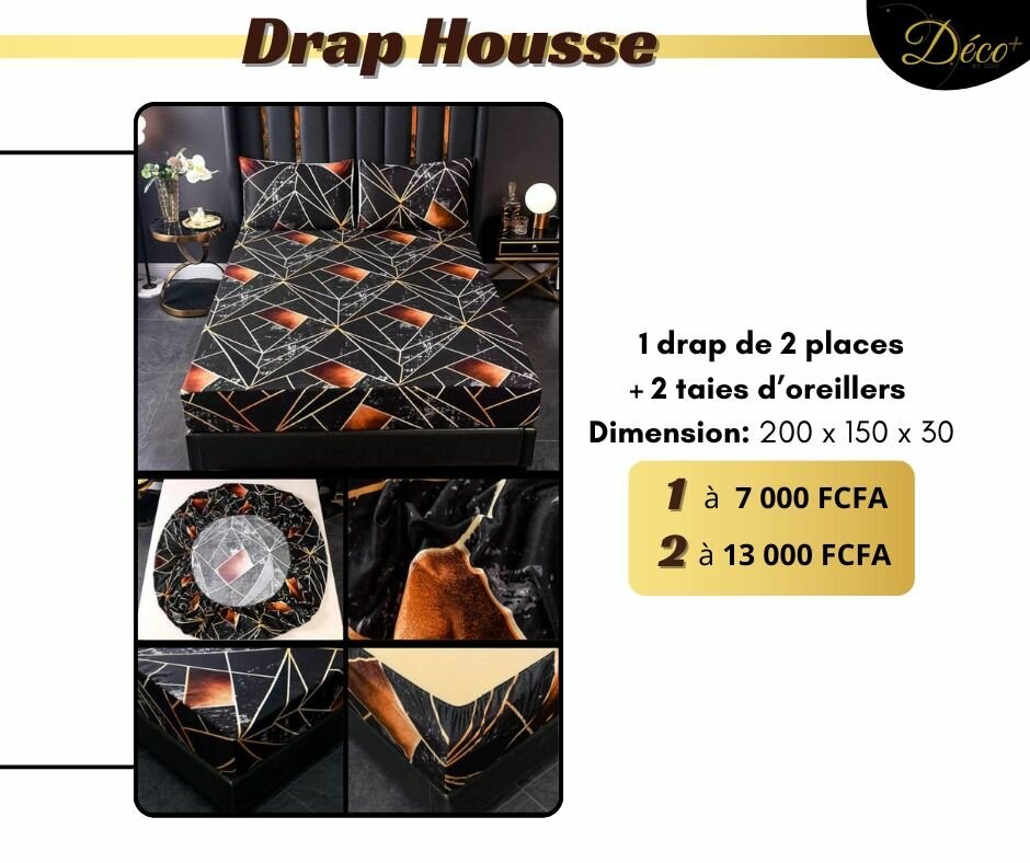 1 drap de 2 places + 2 taies doreillers Dimension: 200 x 150 x 30cm